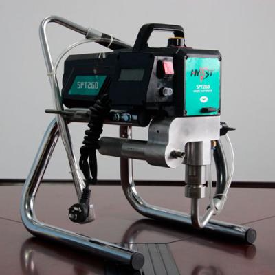HYVST SPT 260 А. Покрасочное оборудование ХИВСТ СПТ 260 А применяется для распыления строительных красок средней вязкости. Используется для проведения покрасочных работ на строительных площадках, для внутренней и наружной окраски. Покрасочное оборудование применяется для покраски стен, потолков, фасадов, металлоконструкций. Окрасочный агрегат распыляет краску под высоким давлением через специальный краскопульт для безвоздушного распыления краски. Раньше окрасочный аппарат поставлялся под названием Dino Power DP 6740.