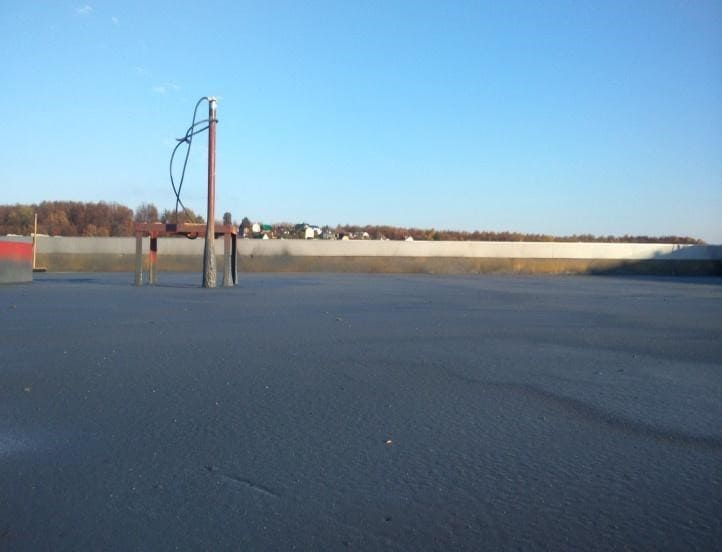 • Гидроизоляционное покрытие при устройстве новых и ремонте старых плоских кровель путем нанесения на минеральные (бетон, цементная стяжка) основания, поверх теплоизоляционного слоя из жесткого напыляемого пенополиуретана или старого кровельного ковра из мембранных и рулонных битуминозных материалов